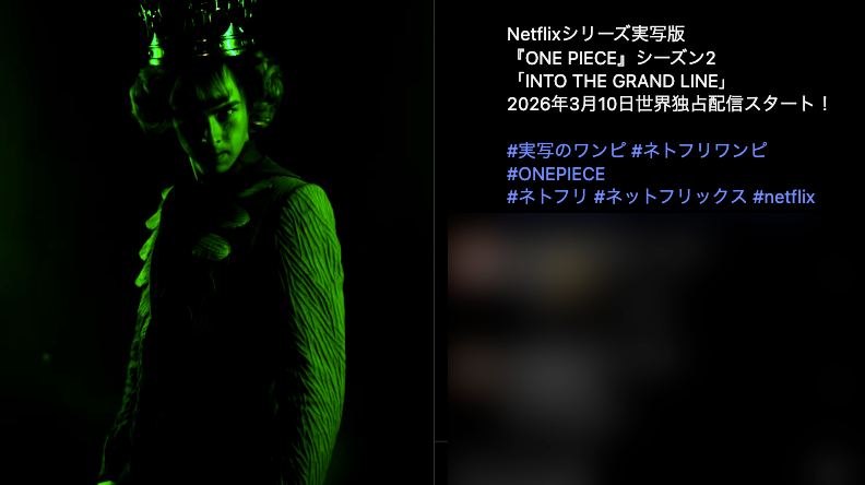 Netflixシリーズ「ONE PIECE」シーズン2は、2026年3月10日(火)より世界独占配信。