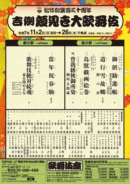 2025年11月2日(日)より歌舞伎座にて、松竹創業百三十周年『吉例顔見世大歌舞伎』が上演される。この度、11月24日(月)夜の部(17時開演)で「イープラス貸切公演」を実施することが決定した。