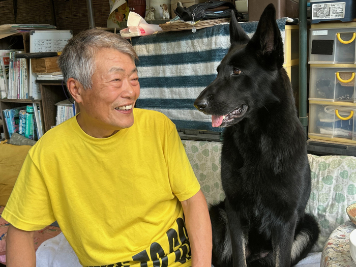 浅利さんによると飼い主家族と過ごしながら、警察犬として登録される犬は少ないという。「可愛くて仕方ない」と浅利さん。メイも浅利さんに常にぴったり寄り添う。