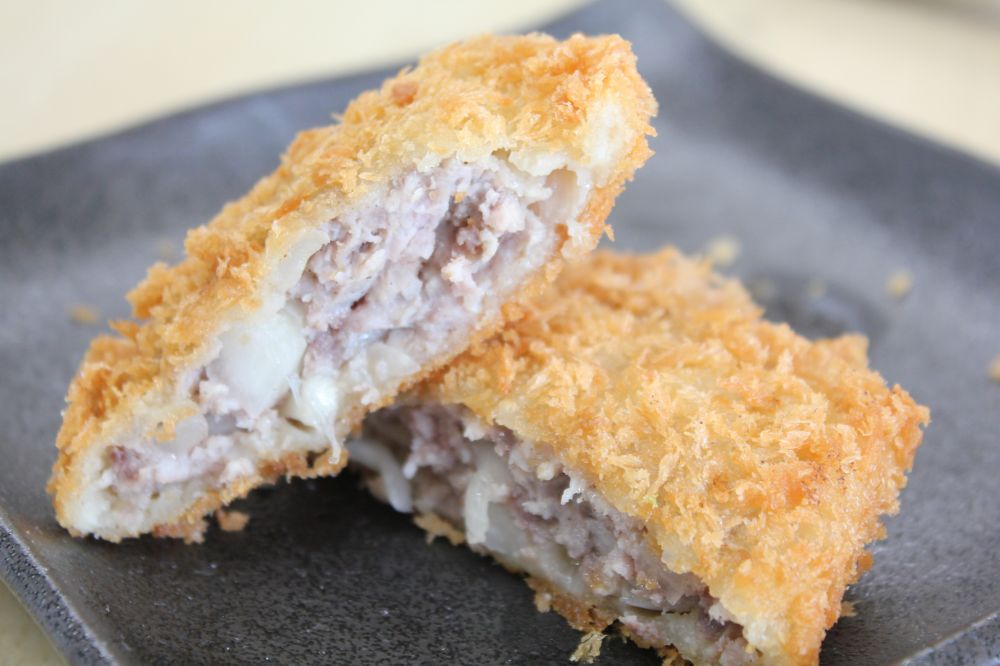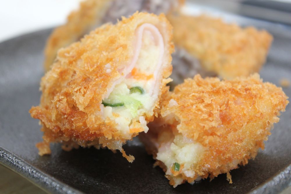 ハムで包んだポテトサラダをそのまま揚げた、ちょっと珍しい一品。衣のザクザク感とポテトサラダのまろやかさが絶妙にマッチしていて、思わずクセになる味わいです。