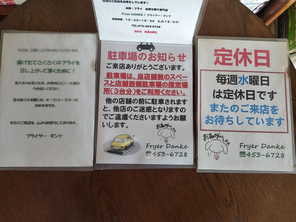 和歌山市善明寺の住宅街にたたずむ「フライヤーダンケ」は、地元で愛される肉や揚げ物のテイクアウト専門店。お店の名前「Danke(ダンケ)」はドイツ語で「ありがとう」の意味。その名の通り、どこか温かくて親しみやすい雰囲気が魅力です。