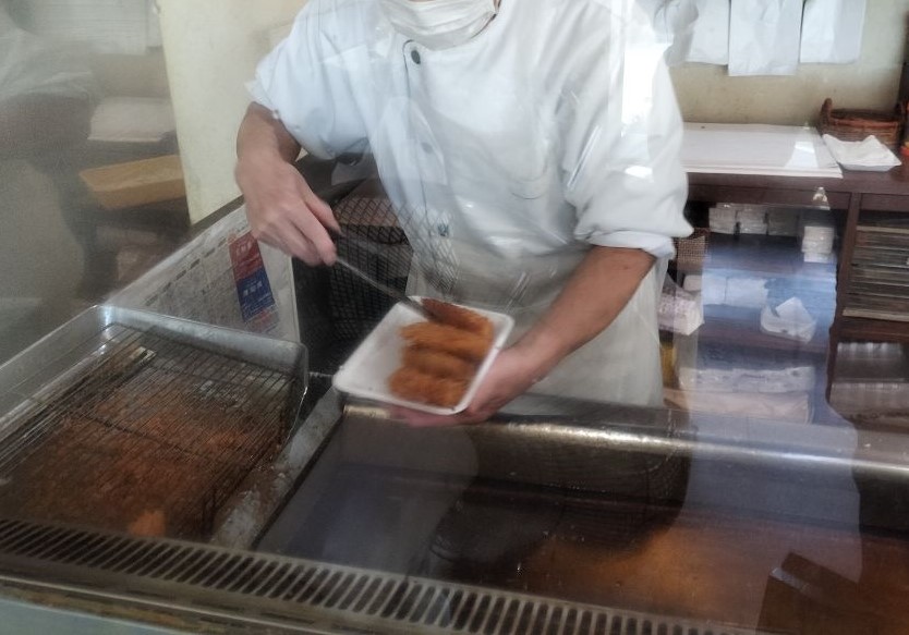 注文後、店主がその場で揚げてくれるので、4〜5分ほど待ち時間があります。もちろん、揚げずに持ち帰って自宅で調理することも可能です。