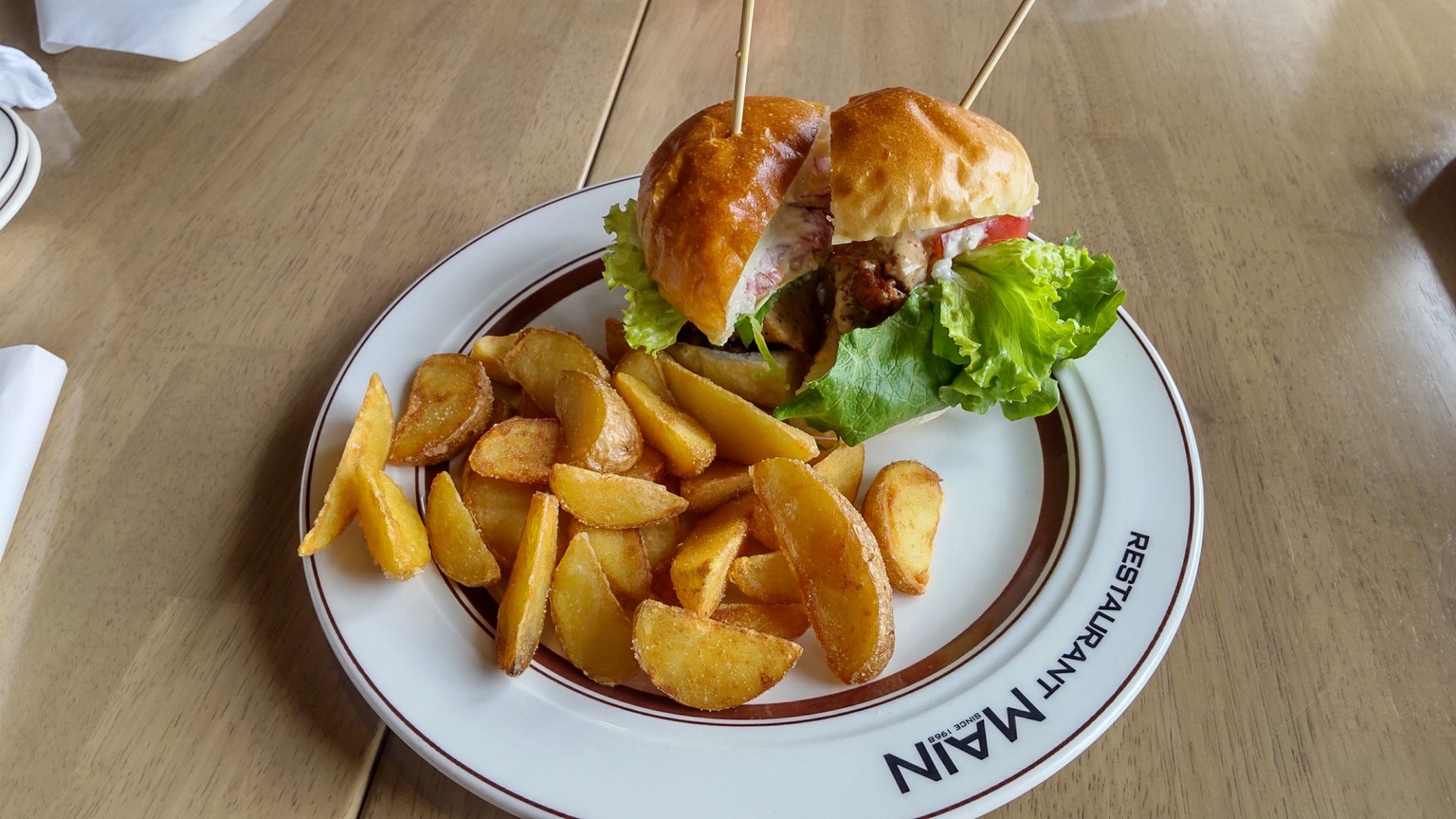 サーフボードにたとえたロングやショートのサイズ展開が遊び心あるハンバーガーも人気で、提携駐車場も完備しています。