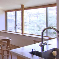 季節ごとの庭の景色が楽しめる、大きなガラス窓