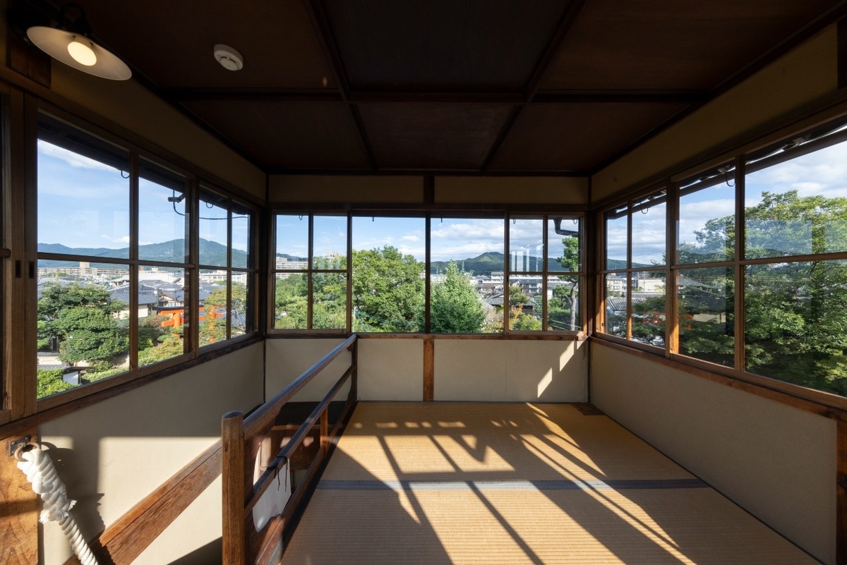 修復の参考にされたのは大正から昭和にかけて記録された写真や図面。とくに主屋については移築前の木屋町三条上るに建っていたころの写真が残っており、鴨川の眺めを楽しむために望楼を設け、1階座敷も川に面して大きく開けているのがわかります。「明治の建築は質実剛健なところがあり、さらには隠居所という性格上、一見すると派手さや豪華さはありません。ただ、望楼を設けたのは眺望のためだけでなく、ステータスの象徴でもあったでしょう」。