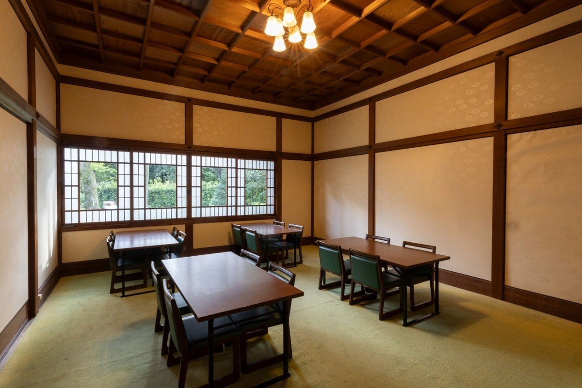 三井家には、本家とそれに連なる家があわせて11家あり、ここは共有の別邸として総領家である三井北家の10代・高棟(たかみね)によって大正14年(1925)に造営されました。かつては隣接して三井家の祖霊を祀る「顕名霊社(あきなれいしゃ)」があり、参拝のための休憩所として利用されていたといいます。