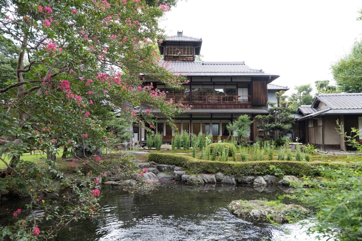 庭から眺めた旧三井家下鴨別邸、百日紅が美しい