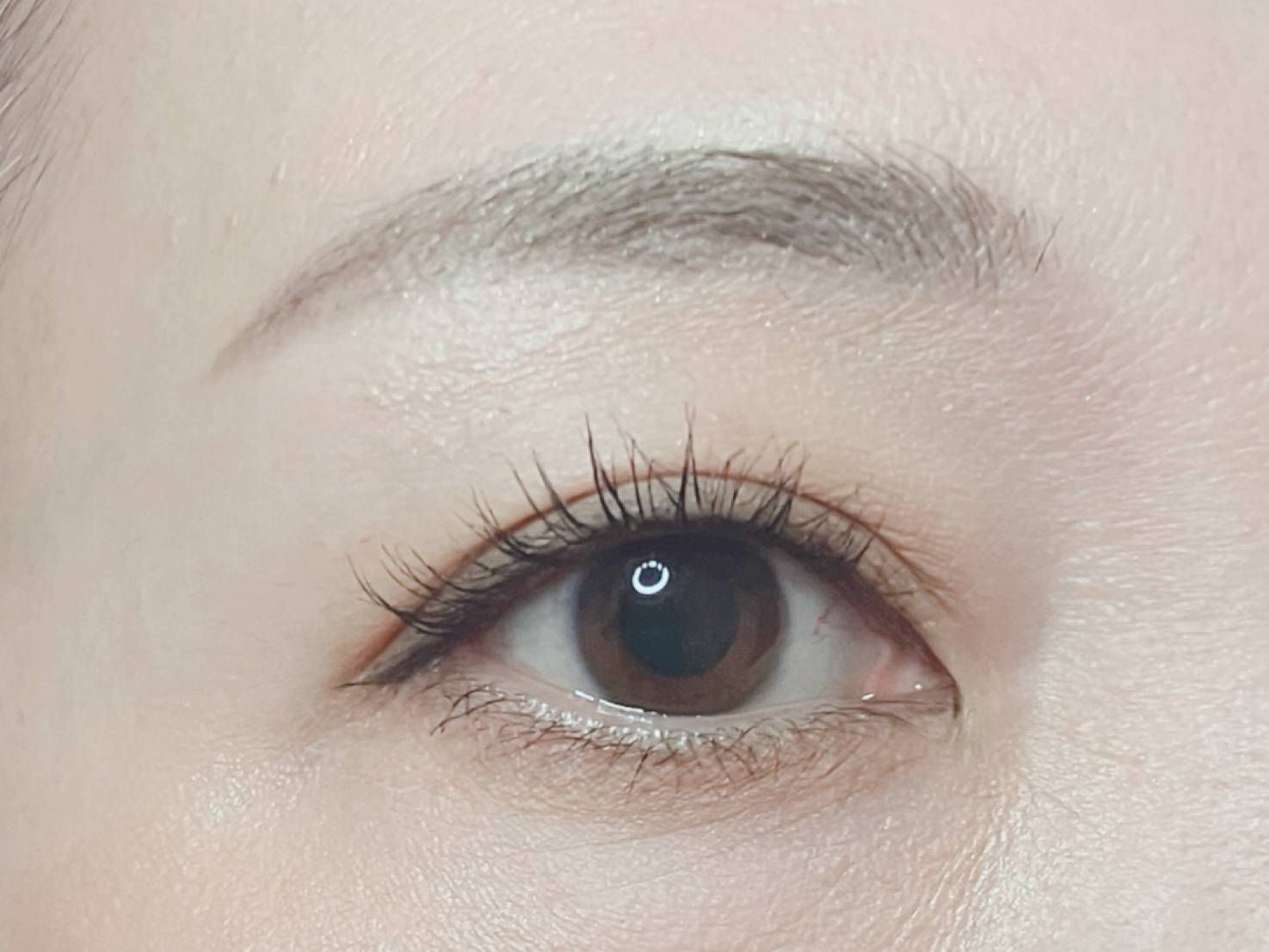 DとFの2色で眉を描くと、ピンクブラウン系の眉色に♪