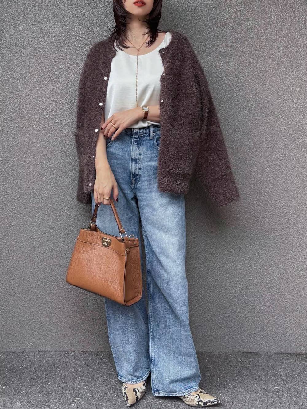 【初秋編】垢抜けるカーディガンコーデ①シャギーカーディガンを肩掛けする♪