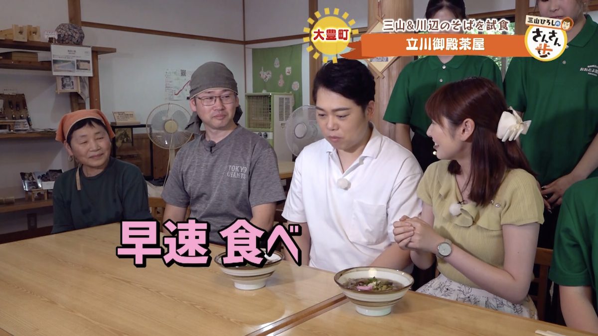 大豊町の名物である立川そばが、後継者や学生さんの若い力で多くの方へ知られている様子を見て、応援していきたい!と思った三山さんと川辺アナ。
