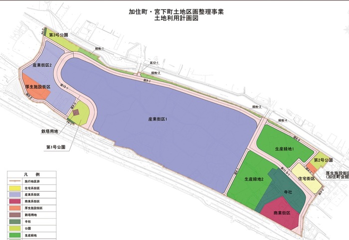同地区については「第3次八王子市都市計画マスタープラン」で、大規模公有地と新滝山街道沿道の活用による地域経済の活性化を図る地域として方針が示されていた。また21年に認定された同地区周辺のまちづくり計画を踏まえ22年に策定された「加住町・宮下町地区土地利用方針」では、産業系の土地利用を主体としつつ、緑や水辺と調和した環境共生型のまちづくりを目指すとしている。同地区の土地区画整理事業は、これらの方針に基づき地権者らが中心となって準備を進めてきた経緯がある。認可時の組合員数は49人。今後は関係機関との協議・権利者調整などを進めて26年度から造成工事を開始、32年度に組合解散を予定。