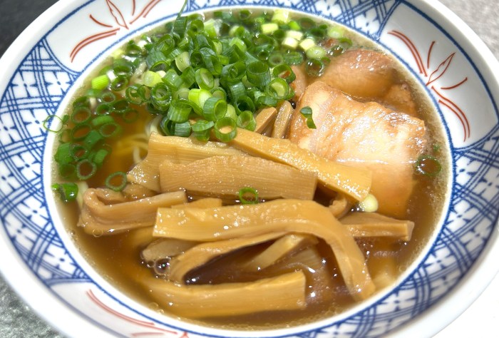 当てにならない思い出によればトッピングもまたシンプルなものだったので、この日もチャーシューとメンマとネギを乗せるにとどめて置いた。