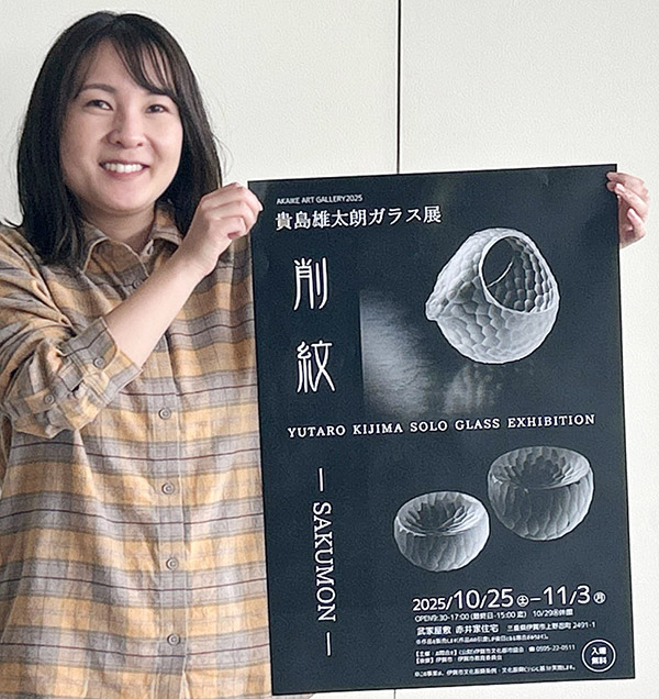 東京在住のガラス作家、貴島雄太朗さんの三重県伊賀地域での初個展「削紋-SAKUMON-」(伊賀市文化都市協会主催)が10月25から11月3日まで、伊賀市上野忍町の赤井家住宅で開かれる。