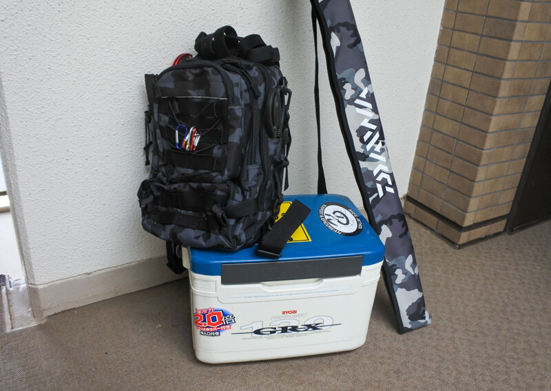 ロッドや小物をまとめて収納できる釣り用のリュック。手が空くので電車の移動がスムーズになります