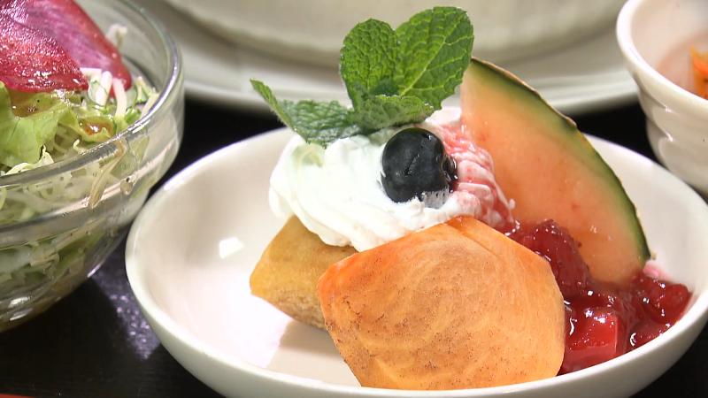 サツマイモは、甘くてねっとりとした食感。付け合わせにしているのは珍しいですが、サツマイモの甘さとちょっと甘めのソースがよく合います。