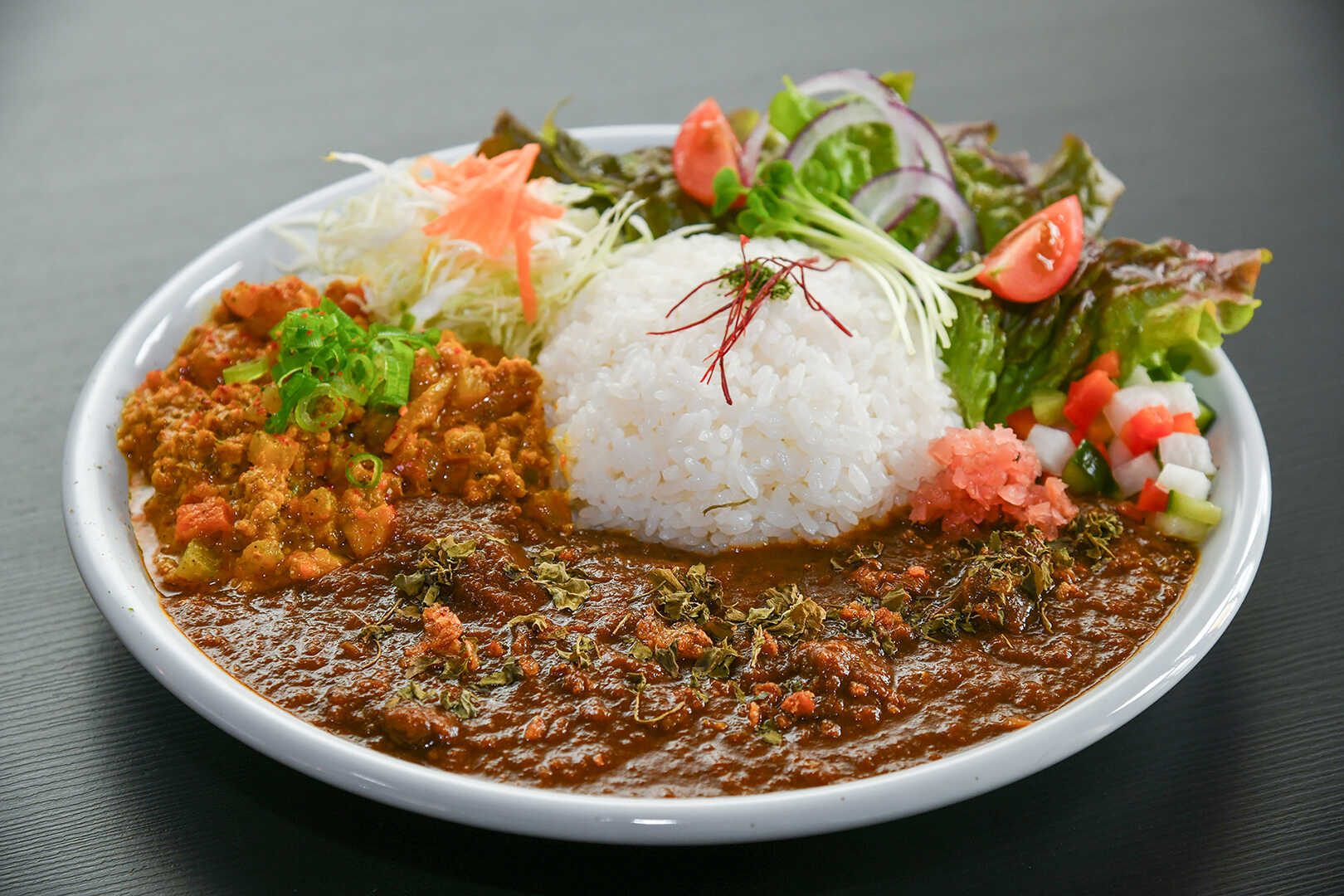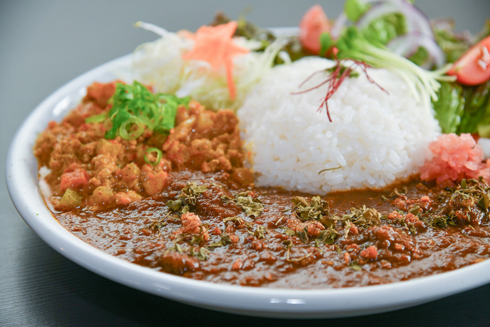 店名に添えられている「curry aid」は店主による造語。トレイルラン経験のある店主が、レースで設けられる“エイドステーション”のように、この店のカレーを食べて体も心も元気になってほしい——そんな願いを込めた。