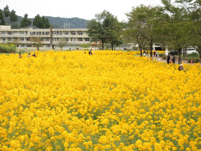 安塚区には広域にわたってヤナギバヒマワリおよそ200万本が植えられています。この花を多くの人たちに楽しんでもらおうと、地元のNPO雪のふるさと安塚が「黄金の回廊」と題して催しを毎年開催しています。