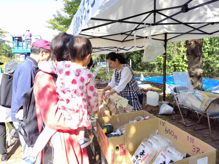 旧安塚中学校南側のメイン会場では、写真用のスポットが設置され記念撮影が楽しめるほか、10月12日(日)には地域の音楽サークルなどが出演する音楽コンサートが開かれたり、物産販売、豚汁のふるまいやわたあめの無料サービス、高所作業車乗車体験などが行われます。