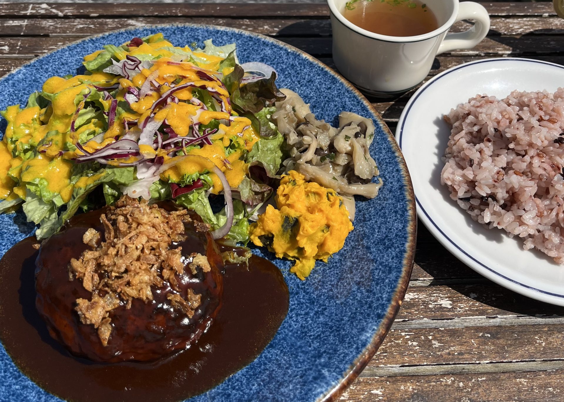 料理の味も絶品で、こだわりの極上ハンバーグ、地元の採れたて野菜や果物を堪能でき、グルメなパートナーも納得の一軒です。