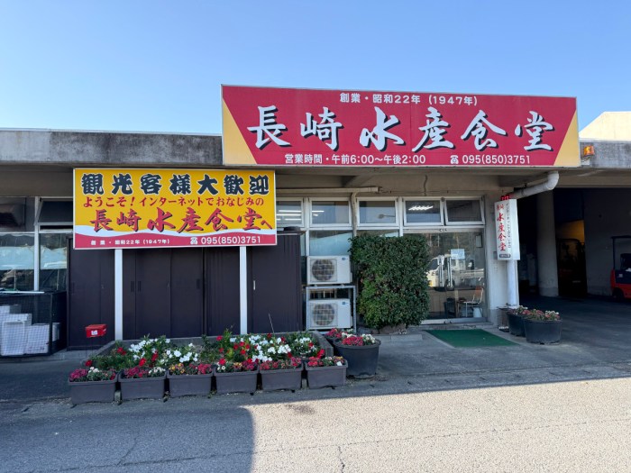 そうか、長崎は海鮮が美味しいのか。だったら美味しい海鮮をたらふく食べたい! 可能ならコスパも良さげで!! ……とリサーチしていたところ、辿り着いたのが『長崎水産食堂』である。