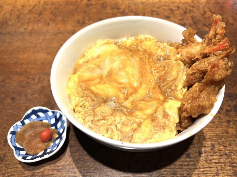 福岡・天神の新天町にある老舗そば屋「飛うめ」は、1947年創業の歴史ある名店。名物の「天とじ丼」は、海老天をふんわり卵でとじ、秘伝の出汁がご飯にしみ込む絶品メニュー。海老が3本入って食べ応えも抜群で、そばとの相性も◎。世代を超えて愛され続ける一杯を目当てに訪れる人が絶えない人気店です。