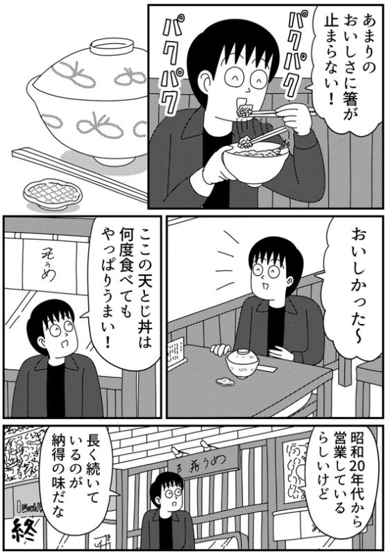 ■ Y氏は暇人の「Y氏」って?■【Vol.50】天とじ丼がおいしすぎる天神・新天町の「飛うめ」に行く話■今回の漫画に登場した「飛うめ」/福岡市中央区天神★「Y氏の散歩と旅〇〇な話」の更新通知を受け取るには…