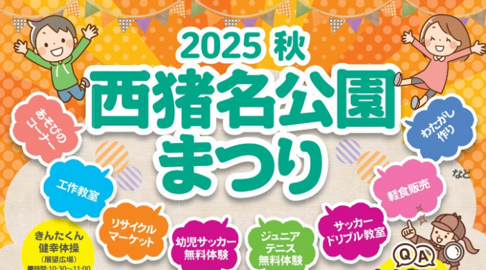 10月26日、西猪名公園(川西市)で「2025秋 西猪名公園まつり」が開催されます。入場無料。
