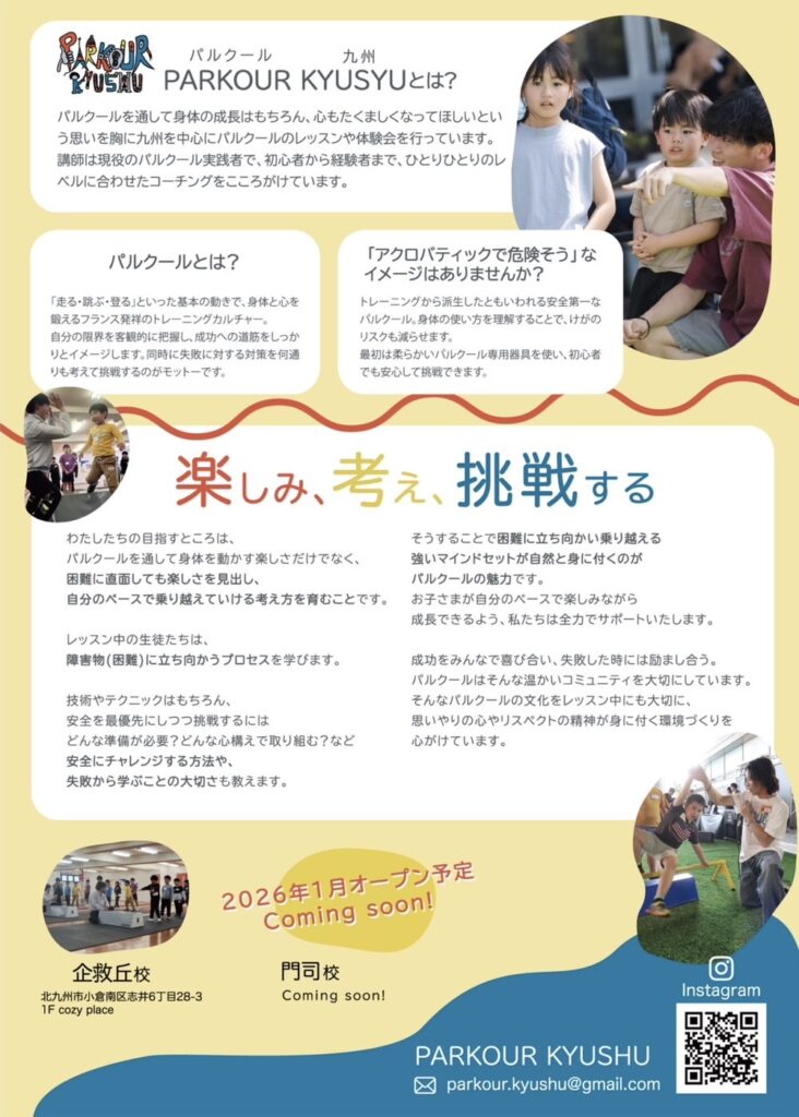 BIG NEWS!2026年PARKOUR KYUSHU門司校オープン決定!!