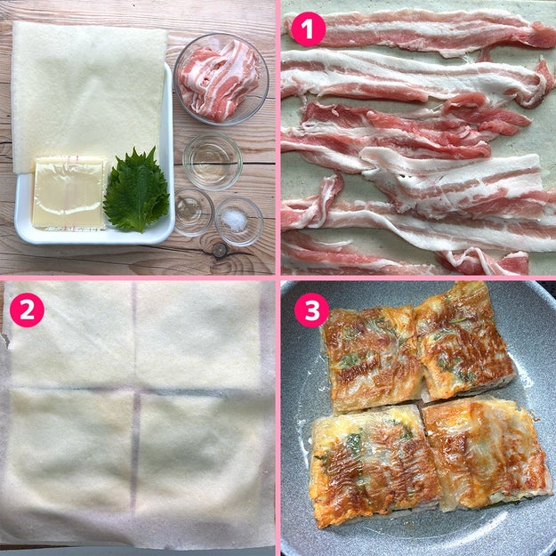 豚バラのうまみ、大葉の香り、とろけるチーズのコクを春巻きの皮でサンドした「豚バラと大葉とチーズの挟み焼き」のレシピをご紹介します。