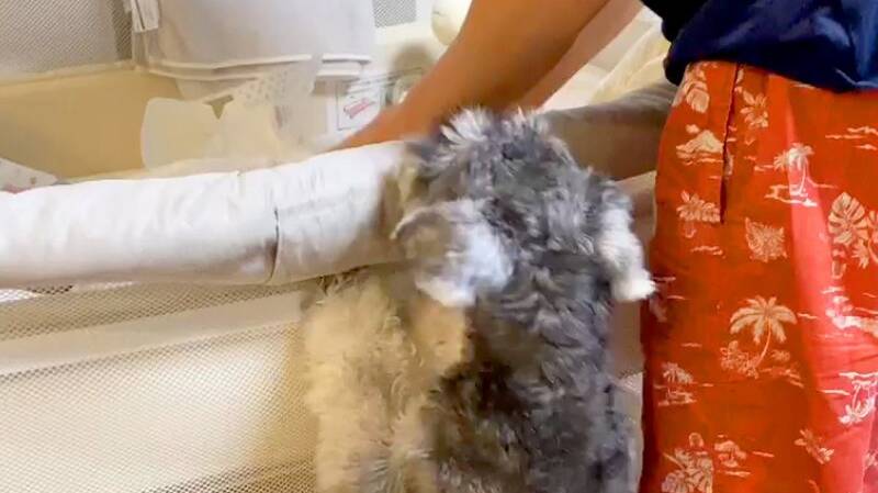 遊んでいるのかと思いきや、こむぎくんが開けたカーテンの穴にはまってしまい抜け出せなくなっている模様…!そんなあずきお姉ちゃんを不思議そうに見ている弟のこむぎくん、自分が開けた穴であることをすっかり忘れている様子だったとか。