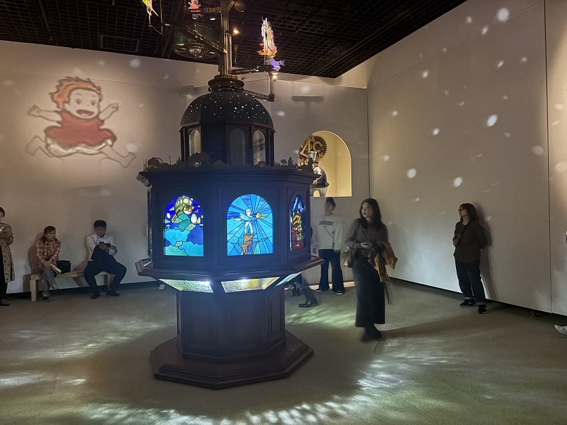 この展示スタイルは、2024年に至るまで一貫していて、アニメ作品を紹介するパネルの周囲には、F1レーサーのアイルトン・セナ、ナタ・デ・ココ、湾岸戦争、英ダイアナ妃の事故死、朝鮮半島南北首脳会談など、世相を象徴する写真が多数置かれている。