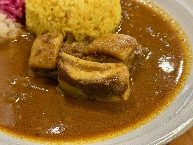 まず目を引くのは、この豚バラのブロック。魯肉飯から着想を得て仕上げたカレーだそうで、とろっと柔らかく、豚の旨みとスパイス感もしっかりと感じられます。