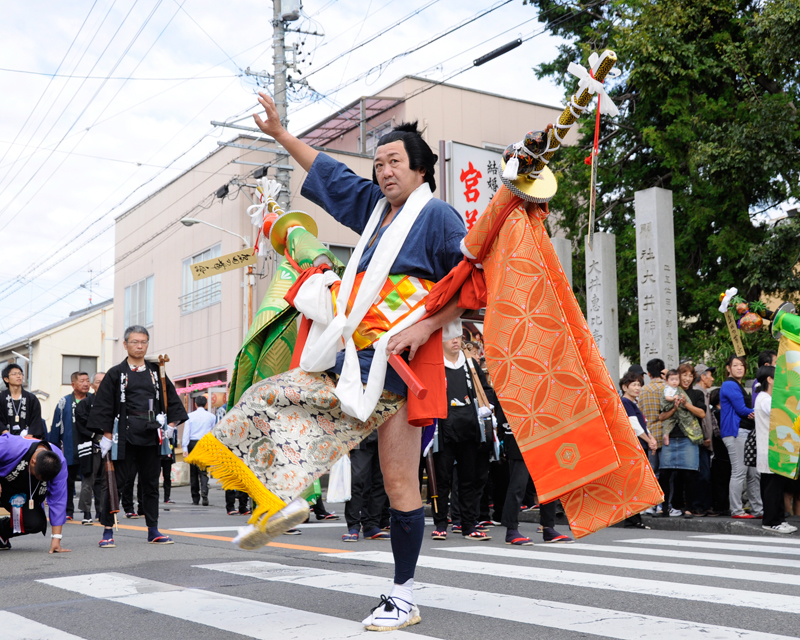 3年に一度開催される大井神社の例祭です。豪華絢爛な元禄絵巻を再現した大名行列が最大の見どころ。特に、安産祈願の帯を太刀にかけた大奴(おおやっこ)が優雅に練り歩く姿から「帯まつり」と呼ばれています。