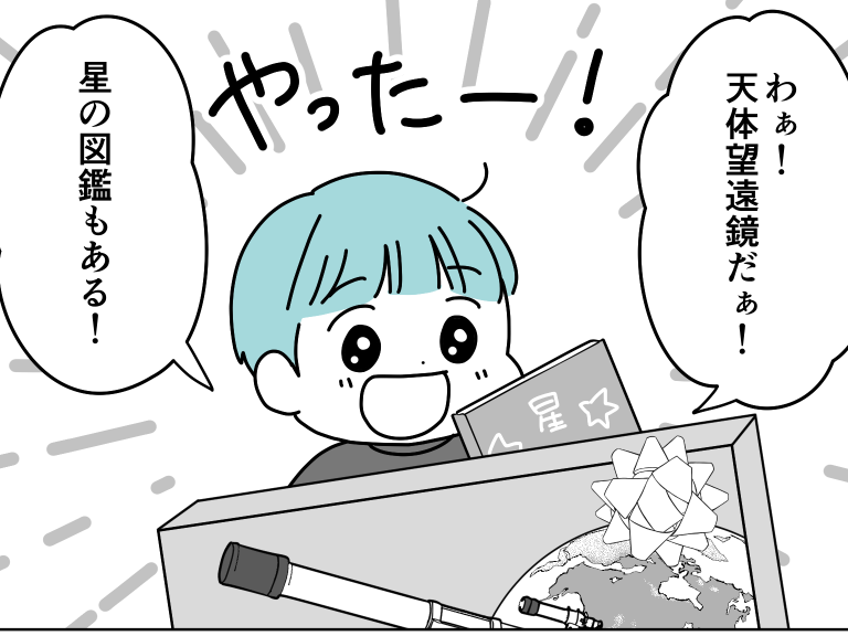 そしてやってきたリクの誕生日。義実家からはリクのほしがっていた天体望遠鏡と、おまけに星の図鑑まで届きました。 贈られたプレゼントからは義母がリクのために吟味して選んでくれたのが伝わり、本当にありがたいかぎりです。 古本をプレゼントすると言われたときは一瞬ギョっとしてしまったし、リクの誕生日をあまり喜んでもらえていないのかなと思ってしまいました。 しかし決してそうではなかったことがはっきりしました。義母からの気持ちをしっかり受け取って、リクがずっと大切にプレゼントを使ってくれることを願っています。