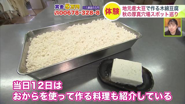 毎月12日の体験会では、豆腐づくりの体験のほか、製造過程でできたおからを使って作る料理も紹介してもらえるんですって。