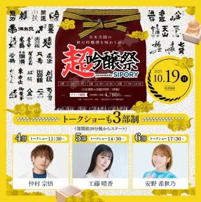 全国の43蔵・162銘柄が一堂に会する日本酒フェス「超吟醸祭 ~秋の吟醸酒を味わう会 powered by SIPORY」が、2025年10月18日(土)・19日(日)の2日間、Hareza池袋・中池袋公園で開催されました。
