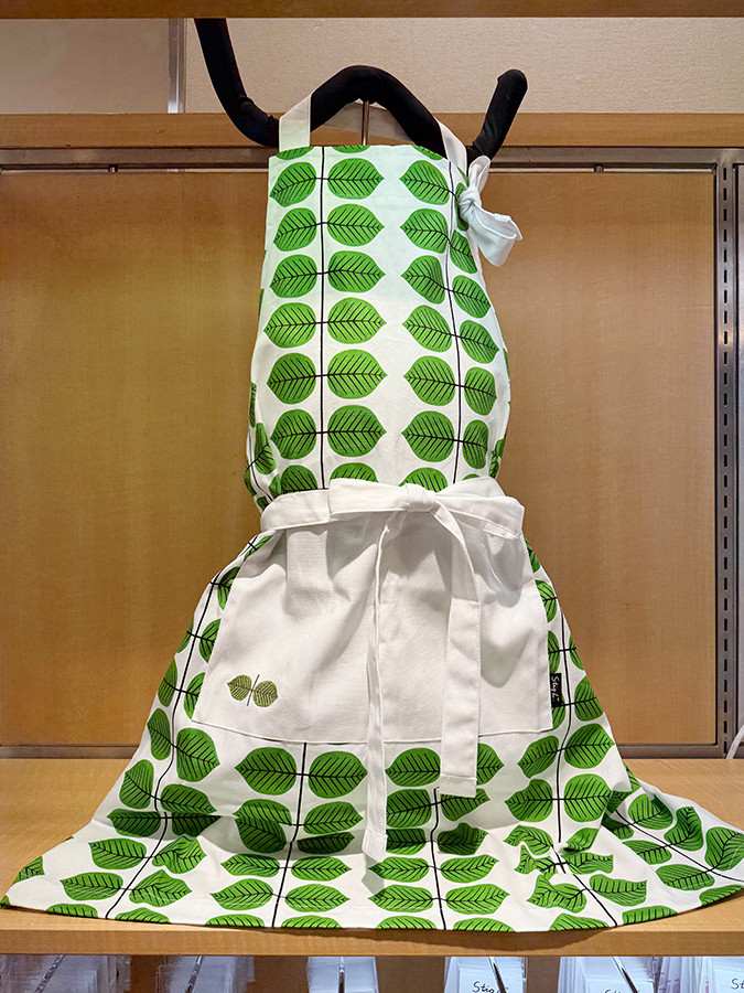 編集部イチオシはこちら。リンドベリを代表するリーフ模様をあしらったエプロン。毎日の料理を北欧デザインとともに楽しめる、実用性と美しさを兼ね備えた一枚です。6,600円