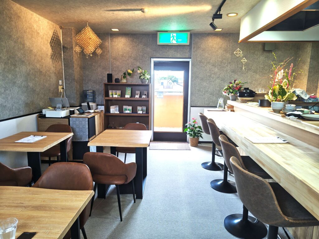 テーブル席とカウンターを合わせた15席の店内は、ほどよい距離感で気軽に利用できます。