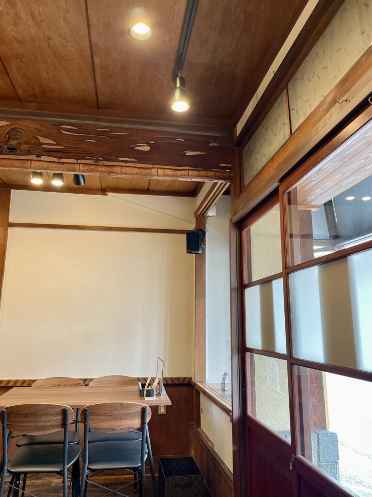 欄間や昭和ガラスをそのまま活かした内装は、どこか懐かしさを感じさせ、初めて訪れても不思議と落ち着ける雰囲気。