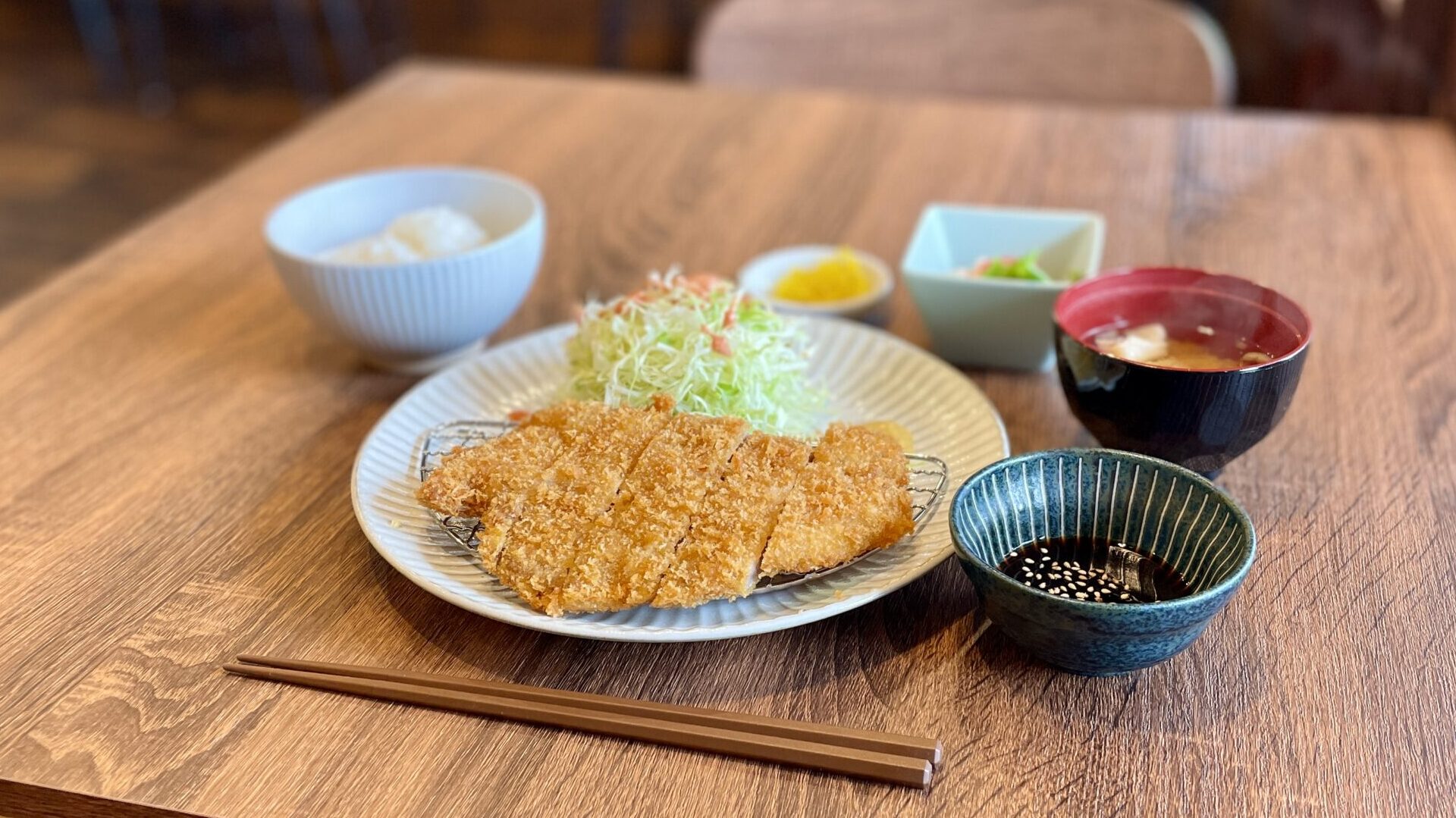 和豚もちぶたを使ったとんかつは、肉質が柔らかくジューシーで、特製ソースとの相性も抜群。小鉢やお味噌汁も付くバランスの良い内容で、満足感の高い一皿です。