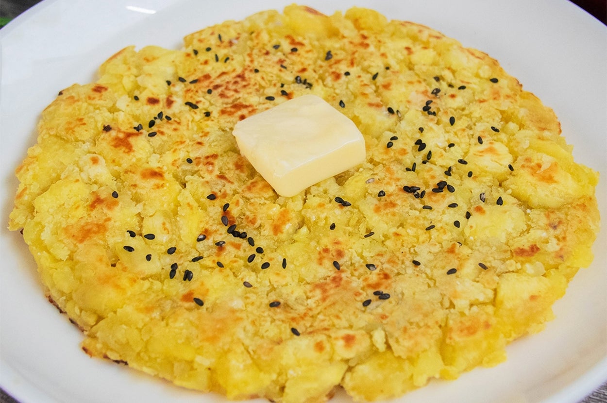 ③ フライパンにバター10gを入れて中火で熱し、②を広げて両面をこんがりと焼く。仕上げに残りのバターをのせたら、完成!