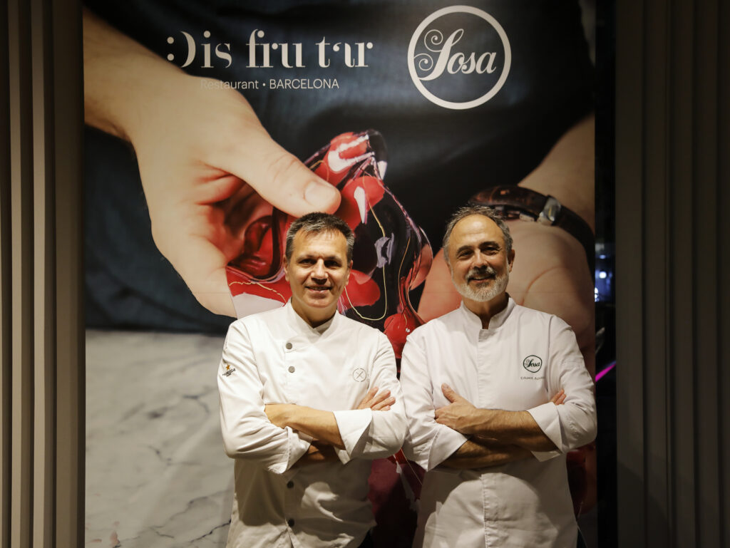 ディスフルタールのオリオール・カストロ氏(左)とソーサ本社のエデュアルド・アフアサ氏。現在もディスフルタールのシェフたちはソーサの商品開発に協力している。