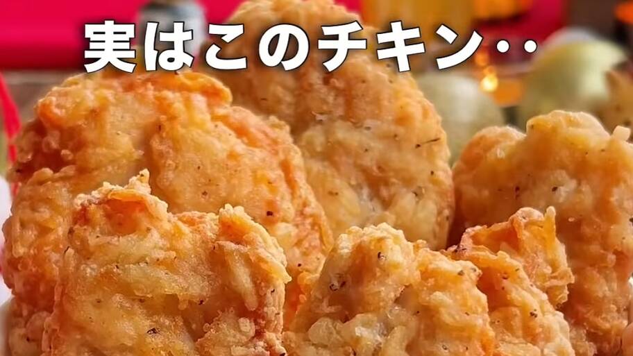 しょうゆとみりんで漬け込んだ鶏もも肉に唐揚げの衣をクラッカーやポテトチップ、おせんべいなどでバリエーション豊かに作ります