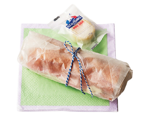 2 クリームチーズと柚子こしょうを混ぜて1のバゲットに塗り、ハムをはさむ。好みでピクルスを添える。