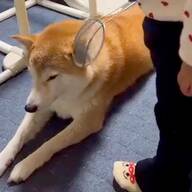 もぐちゃんが離れた隙にペロちゃんの頭を抱えるようにして顔を隠し、「た、たすけて…」と苦笑しました。