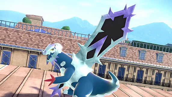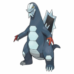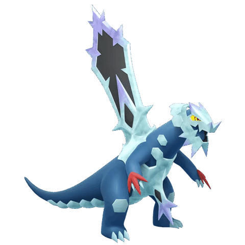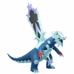 メガシンカによって氷エネルギーの発生量が増え、背びれの巨剣がさらに大型化しました。