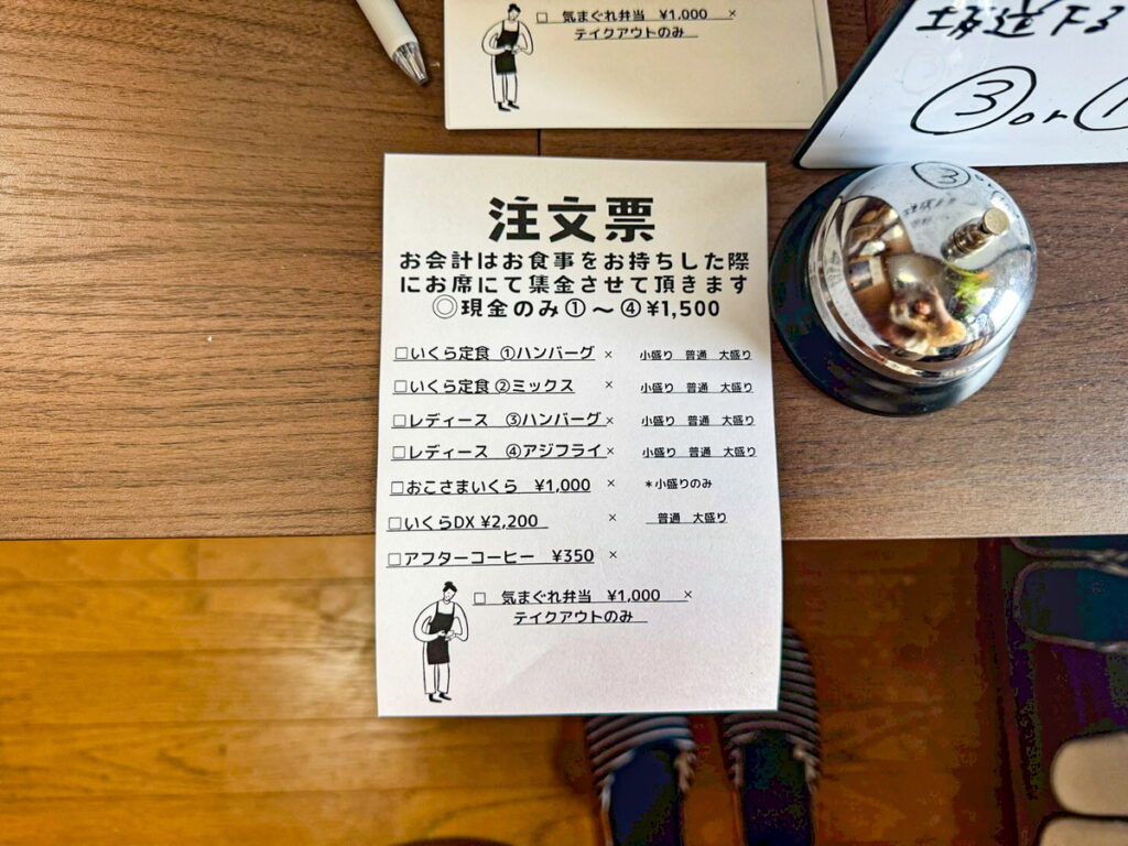 注文票に記入して、オーダーする方式です。