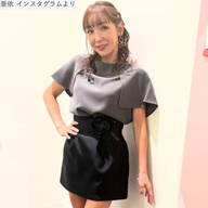 岸明日香は谷間あらわなミニ丈コーデで