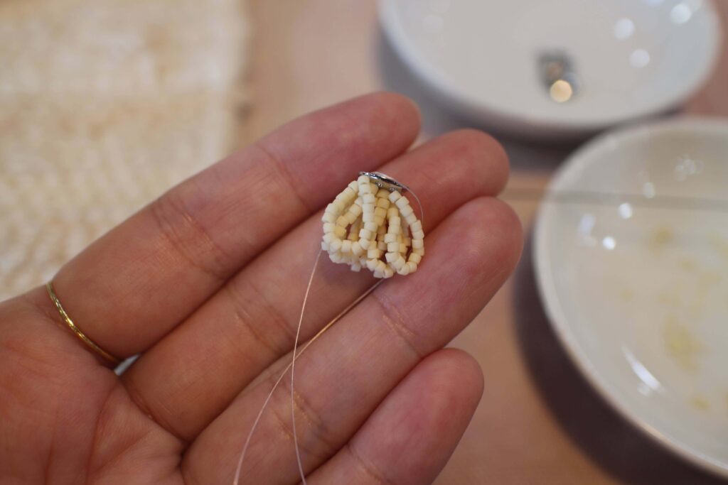 好きな色のビーズを選び、レクチャーを受けながら黙々とピアスづくりを行いました。