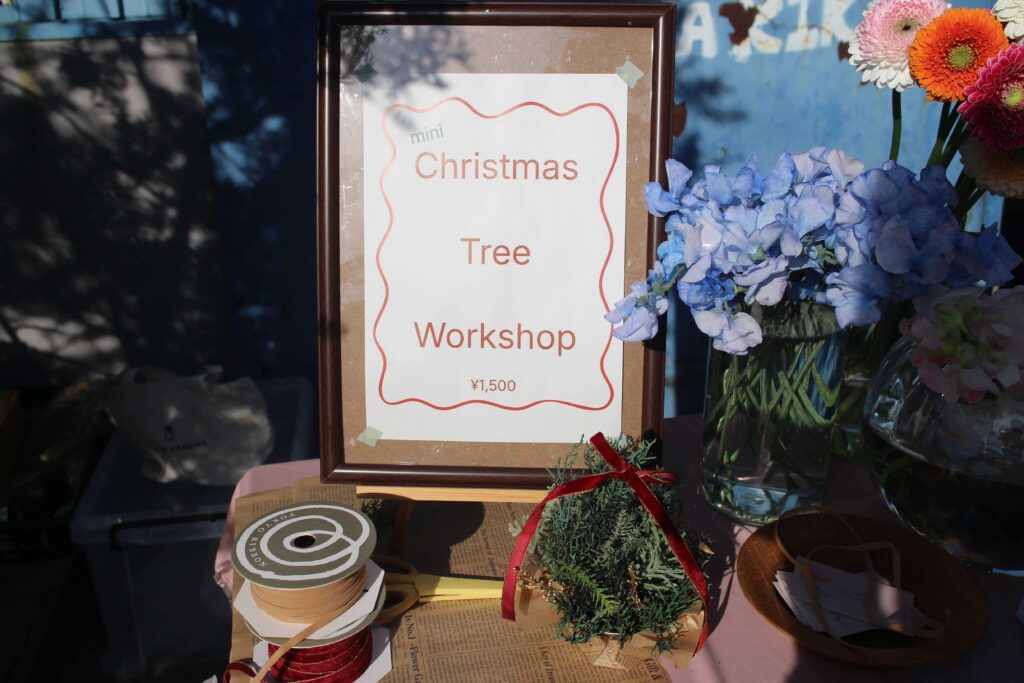 ワークショップでは、グリーンを差し込んでつくるミニクリスマスツリーづくりが体験できます。